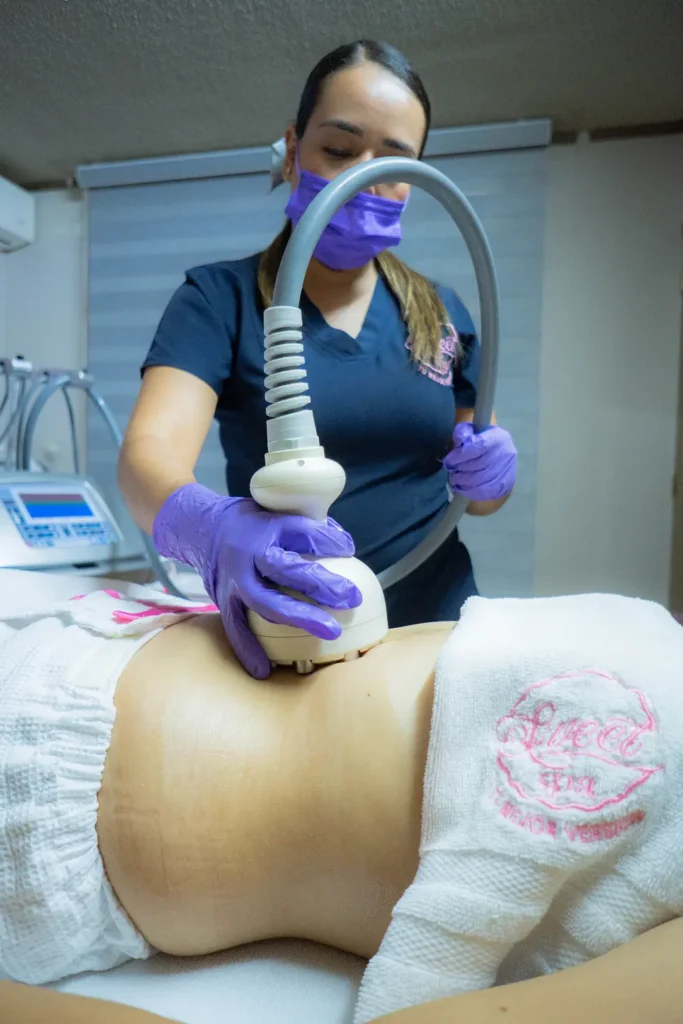 Tecnología no invasiva que ayuda a reducir medidas, mejorar la firmeza y suavizar la apariencia de la piel, favoreciendo una silueta más definida.